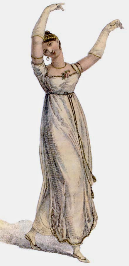 Primeramente, los vestidos eran bastante simples, con la cintura alta, mangas cortas o largas bien ajustadas, de pocas capas de tela, y bastante largos. Se buscaba la comodidad, por lo cual los vestidos eran elaborados de una tela muy delicada llamada muselina.
